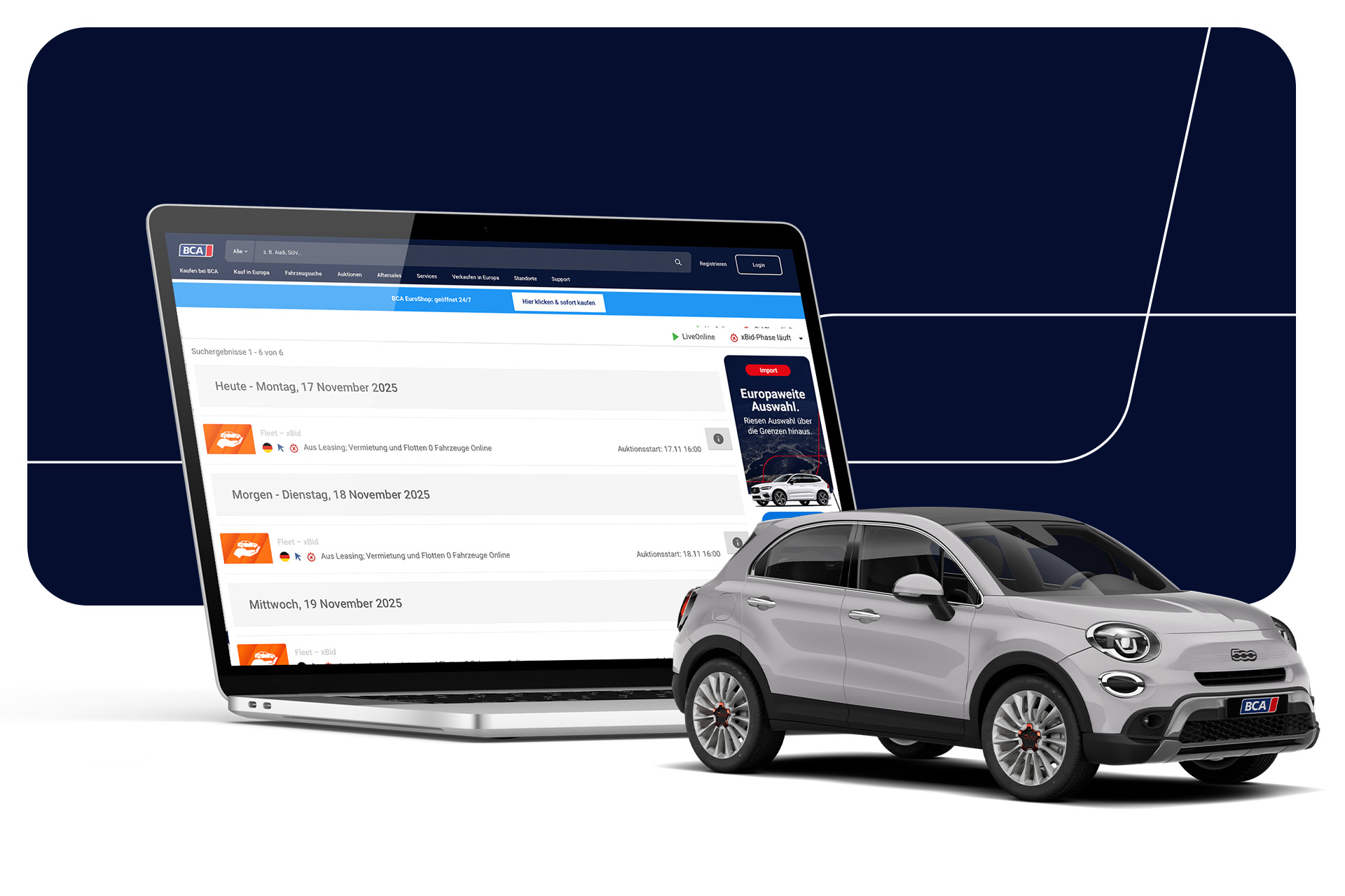 Entdecken Sie jeden Dienstag, Mittwoch und Donnerstag um 13:00 Uhr unser exklusives Fiat- und Jeep-Angebot in der xBid Fleet Auktion. Hier erwarten Sie zahlreiche, gepflegte Fahrzeuge direkt von Leasys, renommierten Leasinggesellschaften und Banken.